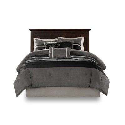 Madison Park Palmer 7 Piece Comforter Set in Black, King MP10-424