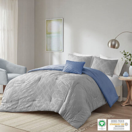 Madison Park Princeton 7 Piece Jacquard Comforter Set in Blue, King MP10-695