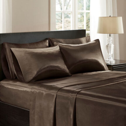 Madison Park Essentials Satin Luxury 6 PC Sheet Set in Chocolate, Full SHET20-181