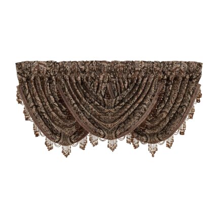 The Mahogany Waterfall Window Valance Is Exquisite With Its Fine Details And Sophisticate Use Of Chocolate And Gold Tones. This