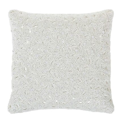 Beaded 14″ Square Decorative Throw Pillow White | Satin by J.Queen New York