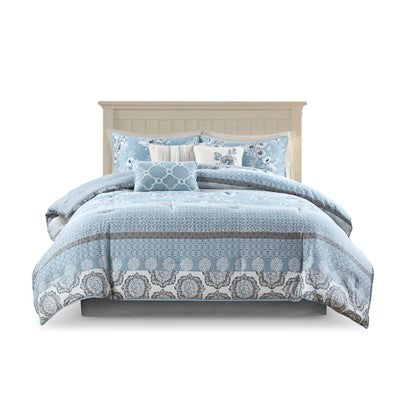 Madison Park Willa 7 Piece Cotton Printed Comforter Set in Blue, Cal King MP10-7344
