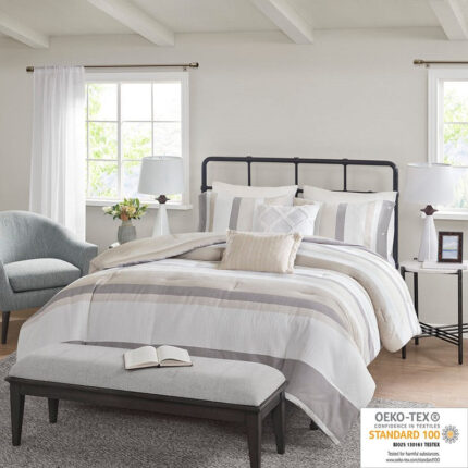 Madison Park Allegany 5 Piece Jacquard Comforter Set in Natural, King / Cal King MP10-7878