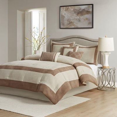 Madison Park Dax 7 Piece Microsuede Comforter Set in Tan, Cal King MP10-7672