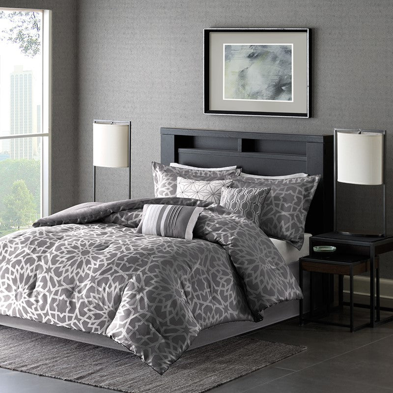 HomeAccessories Madison Park Carlow 7 Piece Comforter Set in Grey, Cal King MP10-2375