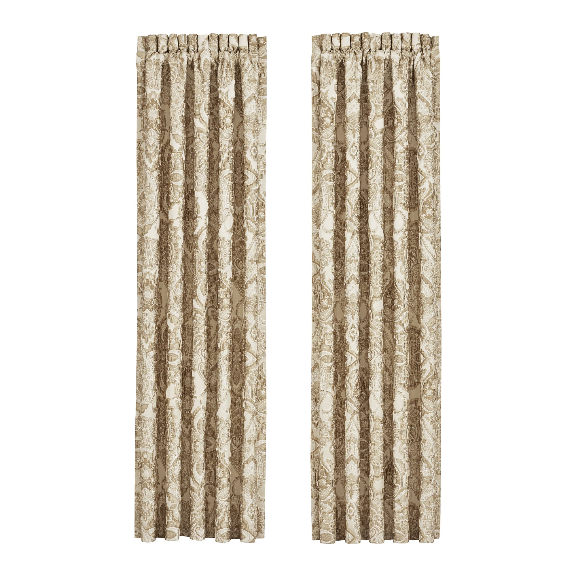 The Sandstone Window Panel Pair Is Exquisite With A Sand Colored Traditional Jacquard Damask Pattern. These Lined Panels Include Tiebacks And Are The Perfect Finishing Touch To Complete A Traditional Look, While Filtering Light And Keeping You Comfortable Throughout The Day. The 3″ Header And 3″ Rod Pocket Make These Panels Easy To Hang. Pair These Window Panels With The Sandstone Window Valance And Bedding Set By J. Queen New York For A Complete Look.