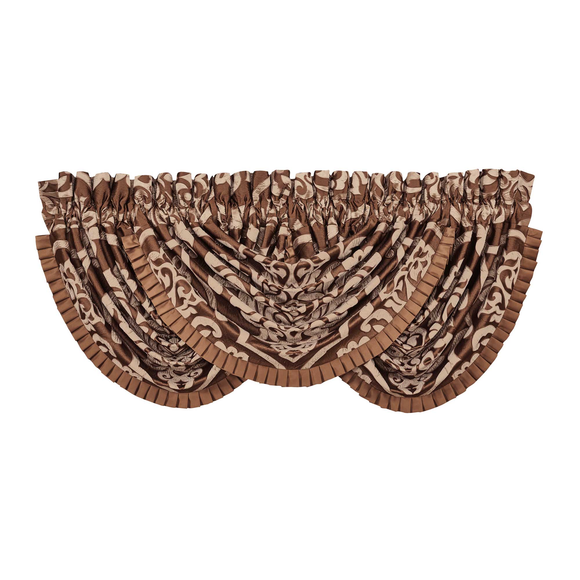 Create A Tailored Look On Your Windows With The Elegant Surano Waterfall Valance, Made With A Stunning Woven Jacquard Damask In Copper And Beige Hues. The Lined Valance Is Trimmed With A Pleated Flange For An Added Decorator’S Touch And Fine Finish. In Order To Achieve The Look In The Photo, We Suggest Using Three Valances (Each Sold Separately).