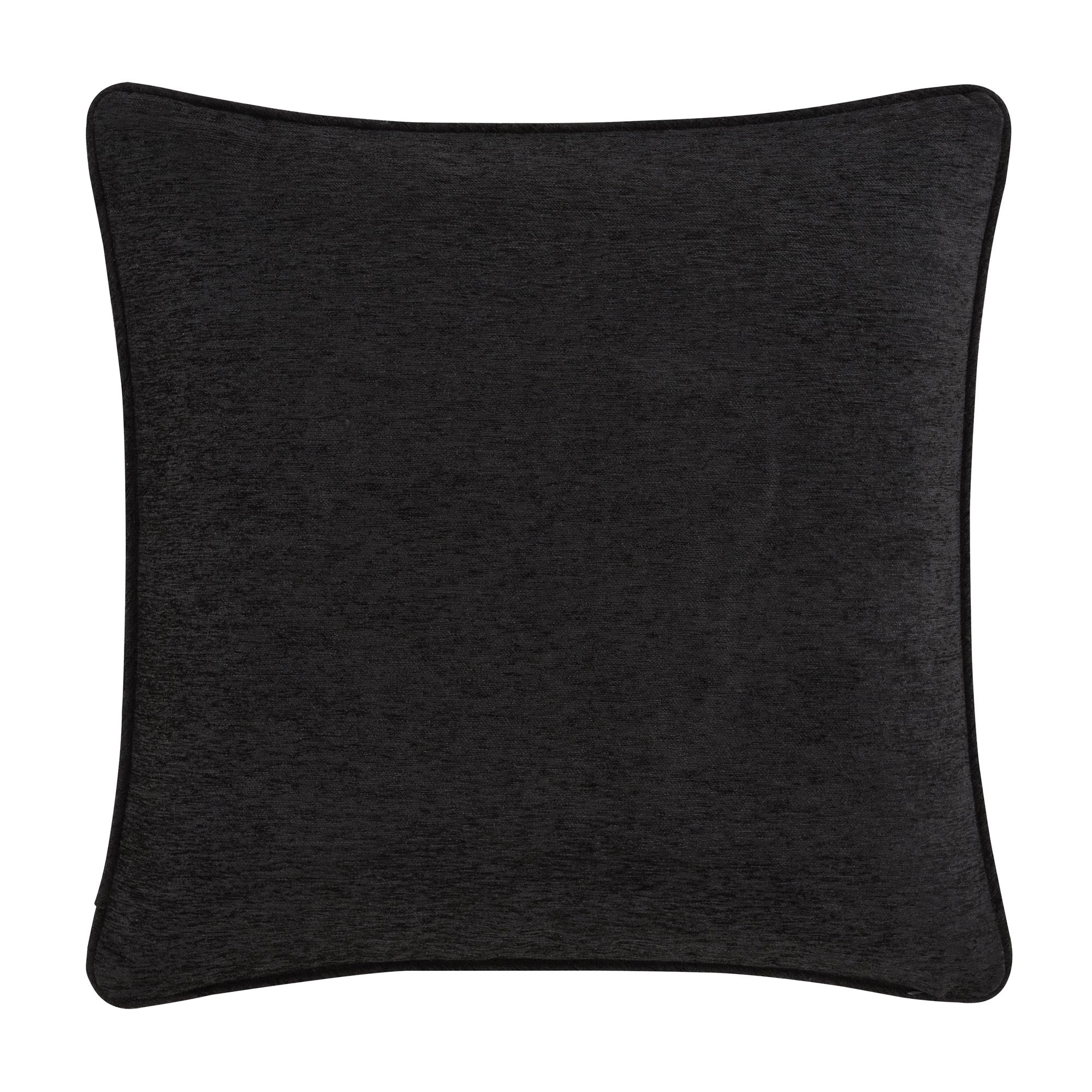 The Toscano 20″ Decorative Pillow Is Made Of Solid Black Chenille And Embellished With Beautiful Embroidery Using Motifs From The Main Pattern In All 4 Corners. This Pillow Is The Finishing Touch To This Beautiful Bedding Ensemble.