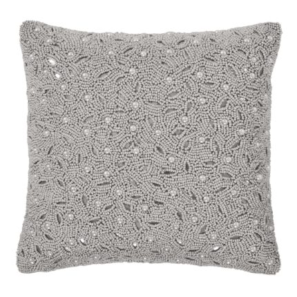 Belvedere 18″ Square Embellished Decorative Throw Pillow in Silver by J.Queen New York